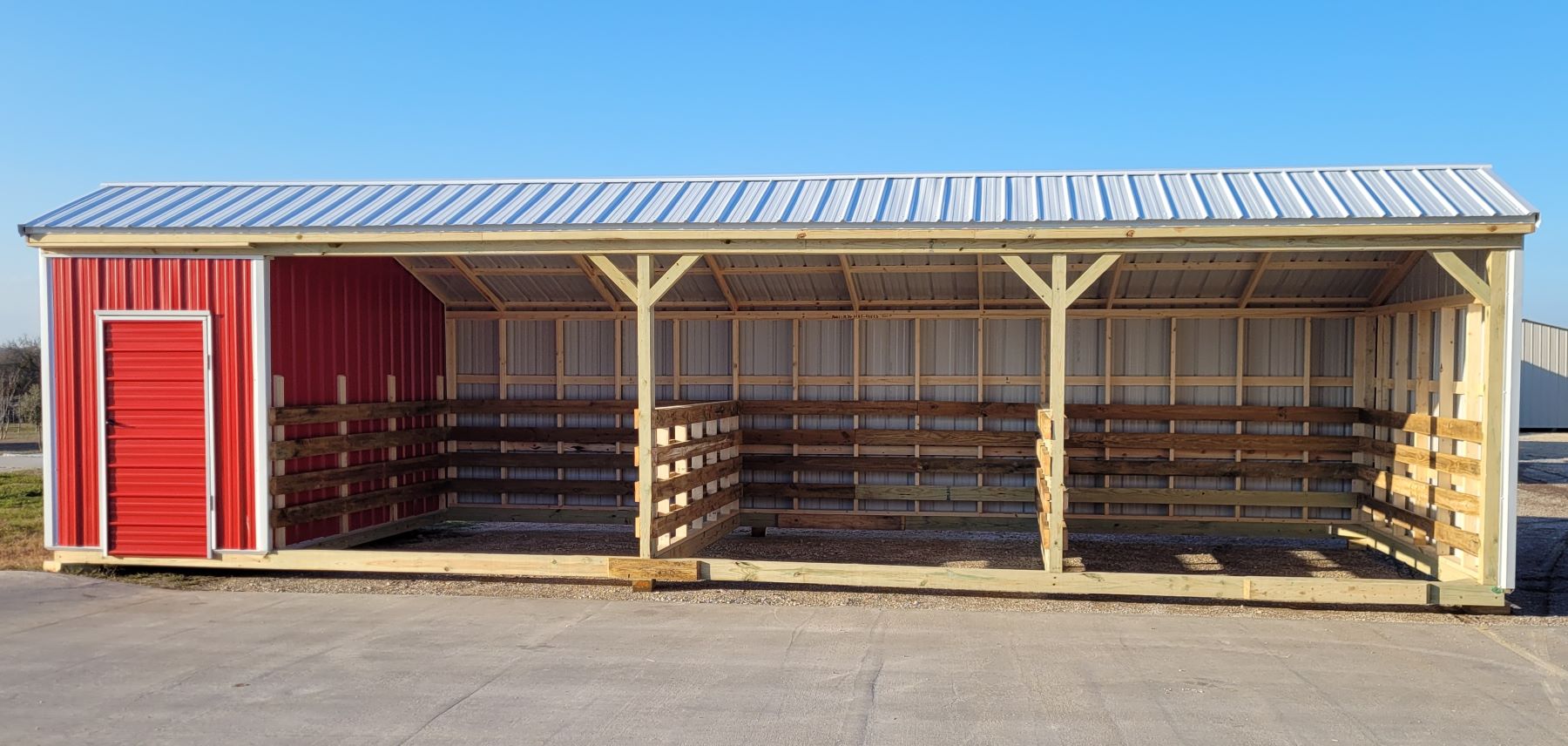 Do you need convenient storage for all your riding gear? Our horse barn builders in Texas can add a practical 6-foot tack room to your structure.